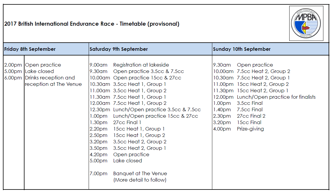 MPBA iMBRA League International 2017 5th August 2017 webmaster Events, iMBRA, MPBA, Multi Timetable for the MPBA iMBRA League International at Billing Aquadrome on 8/9/10 September (Click to enlarge) Like and Share Tweet Leave a comment Billing Aquadrome, GB International