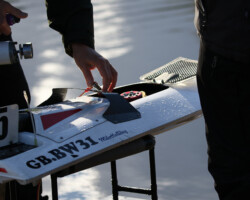 Low scores in 15cc as mechanical issues and crashes result in an underwhelming 15cc race performance wise. By this time of the day, the low sun had moved into the perfect position to pretty much obscure the whole left-hand side of the course. It was nigh on impossible to see any dead boats, making the transit down the left squeaky bum time for the drivers. Usually, we would have lots of shots of spectacular crashes, but we couldn’t see a thing either, with all the highlights being too white and all the shadows too dark! Not the best time of year for boat photography.