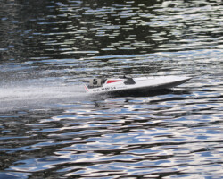 You need to go out aggressively if you want the highest laps and James Taylor could tell he was not going to beat Dave Marles score unless he got a move on. Unfortunately, a desperate attempt to pass stubborn Paul Adams resulted in the crash that put an end to James hopes of the cash prize. This battle produced an exciting few minutes of racing, so well done to James and Paul for the entertainment factor! Mick Pain was very pleased with the performance of his new Costa design 27cc boat first time out, although a bit down on speed compared to Paul and James.