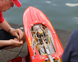 Keith Burgess knows what he’s doing with a 3.5 engine and dominated the 3.5cc hydro class as he did in the multi. This win edges him closer to Phill Fields in the Championship while Phill was away in Therdonne. Dave Pillman gets a 3rd place trophy just for turning up without a boat!