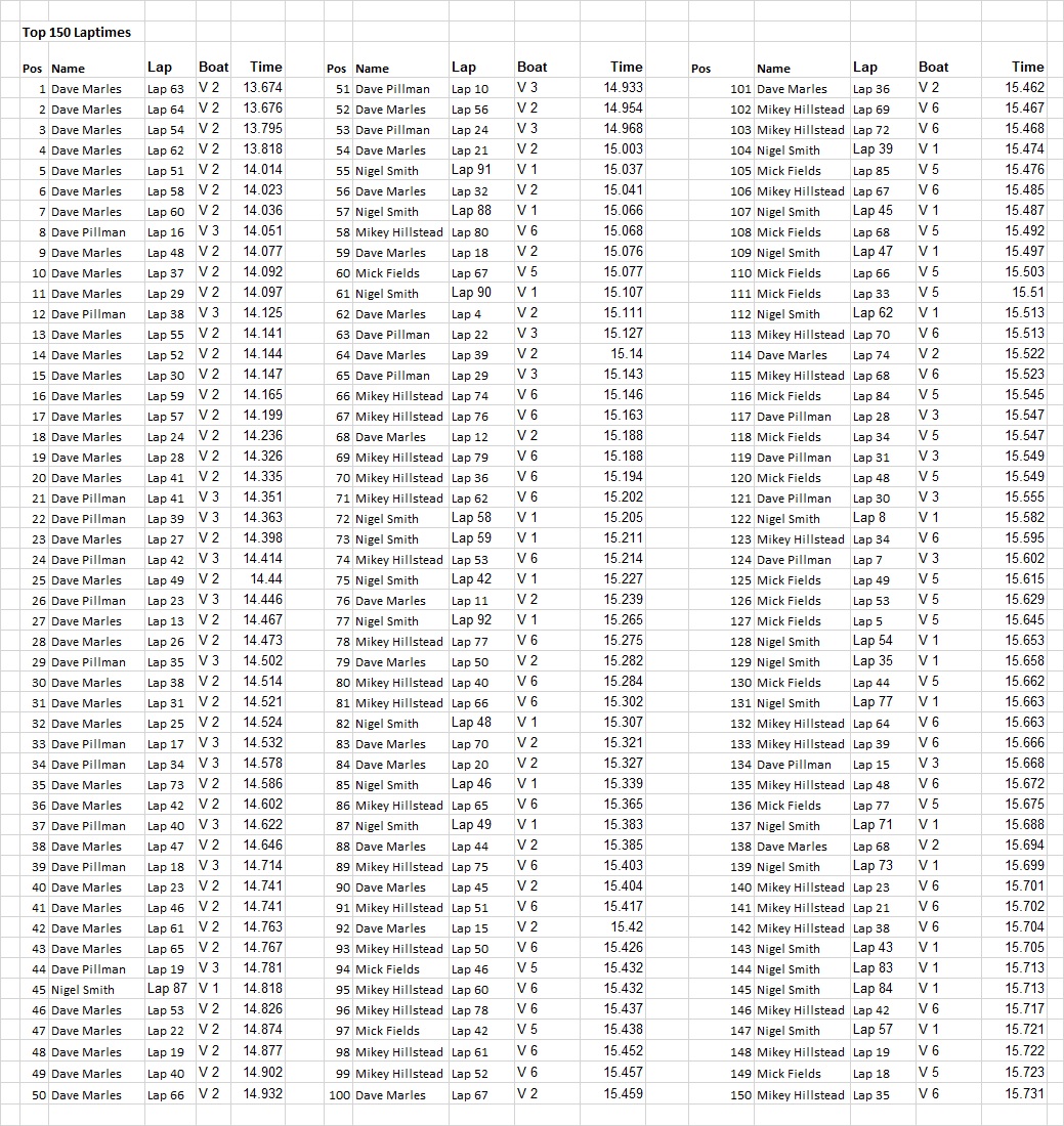 44 | 14.781 | Dave Pillman | Lap 19 |